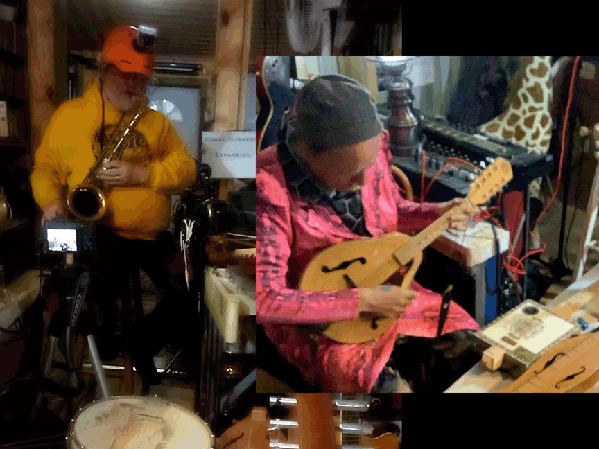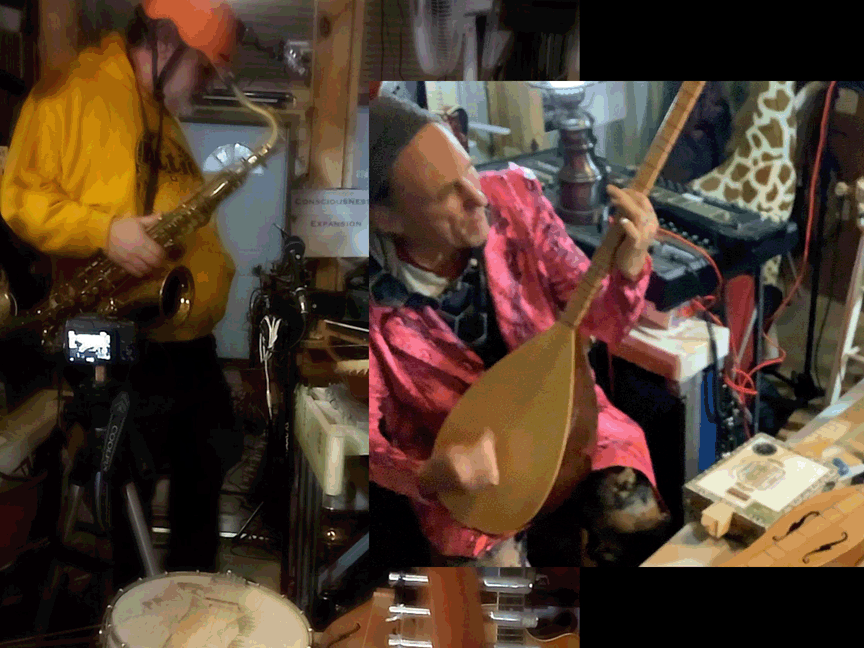 w/ Ben Opie: temor sax; tENTATIVELY, a cONVENIENCE: decorative hurdy gurdy, Celtic Lyre, Zither 19th century German Concert Zither, cigar-box guitar, lap guitar, dulcimer, 1/2 size violin, 3/4 size violin, full size violin, electric violin, gusle, 6 string acoustic guitar, 12 string acoustic guitar, 6 string electric guitar, cello, electric bass guitar, saz, mandolin, decorative balalaika, mini-guitar, bowed psaltery, 5 string banjo.