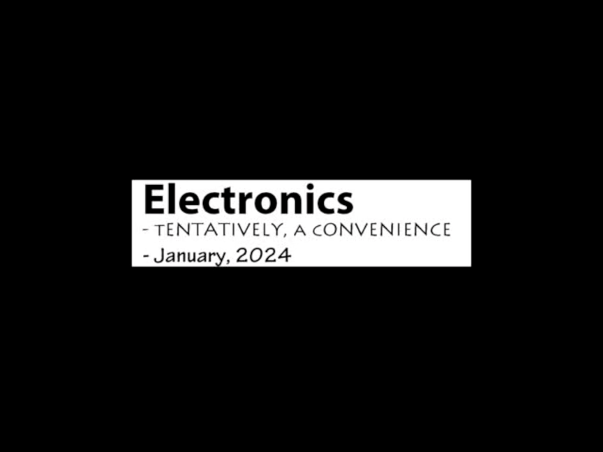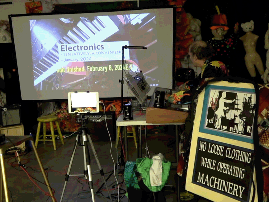"ELECTRONICS", a movie of mine giving 88 examples of my ELECTRONICS work from 1976-2024 with its doundtrack turned off & a live soundtracked provided solo