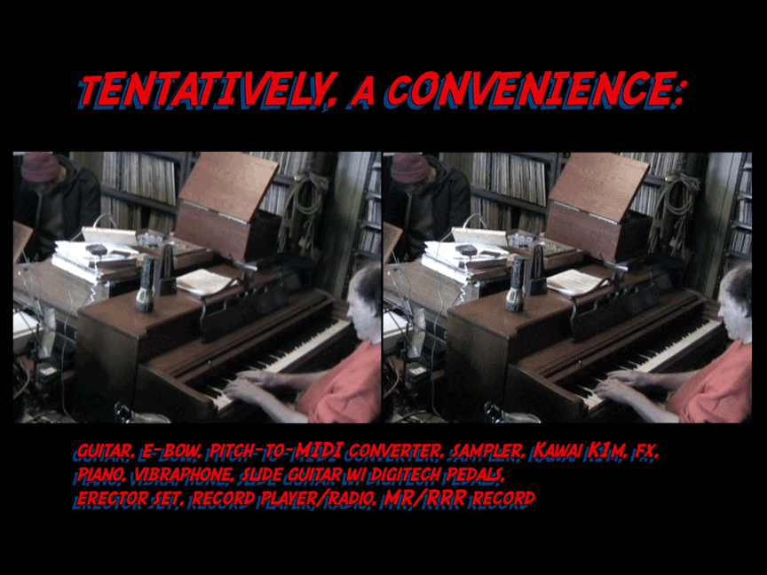 - featuring: tENTATIVELY, a cONVENIENCE: foil electronics, Cynbal Walker, Schalmei; Roger Dannenberg: trumpet
