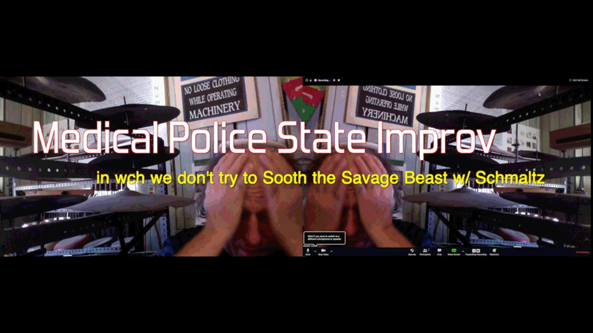 616. "Medical Police State Improv in wch we don't try to Sooth the Savage Beast w/ Schmaltz"