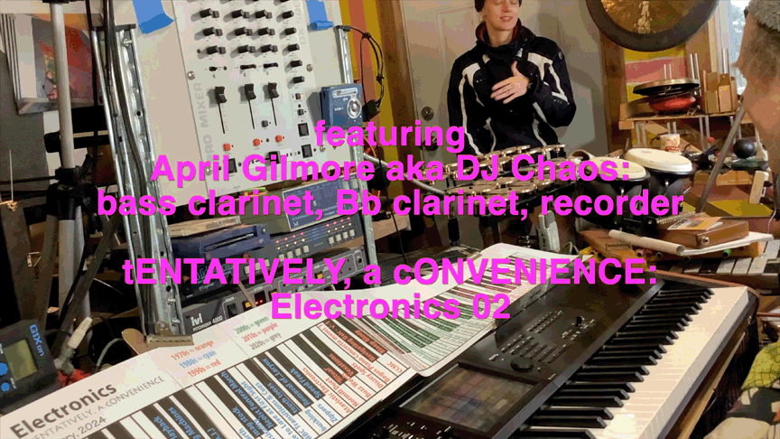 - featuring April Gilmore aka DJ Chaos on bass clarinet, Bb clarinet, & recorder + tENTATIVELY, a cONVENIENCE on Korg Kronos sampler (Elecrronics 02)