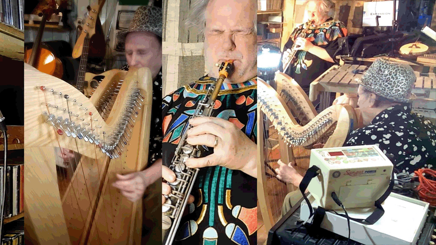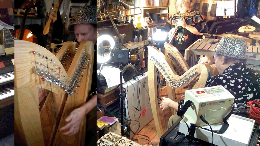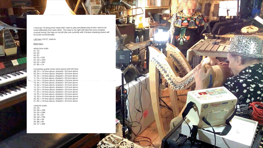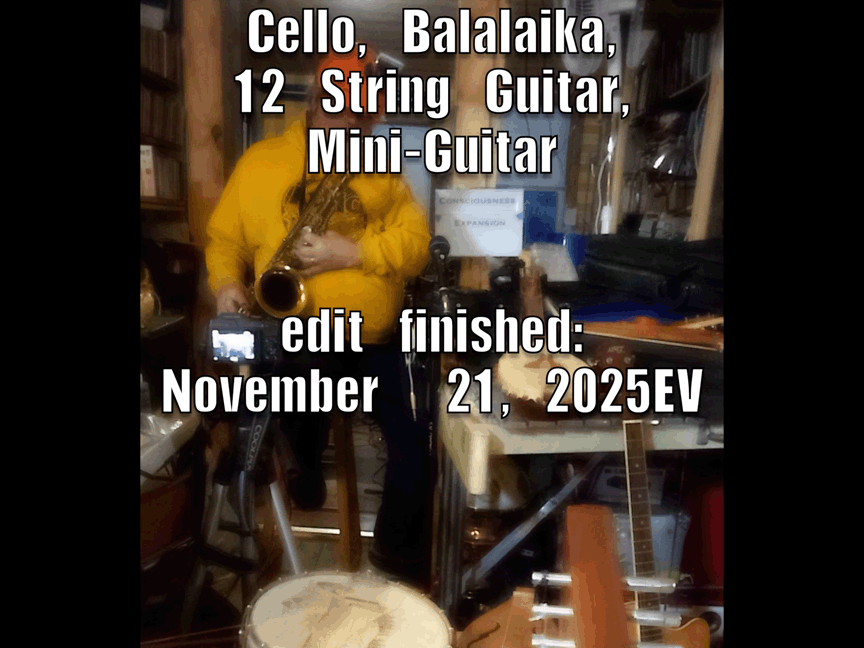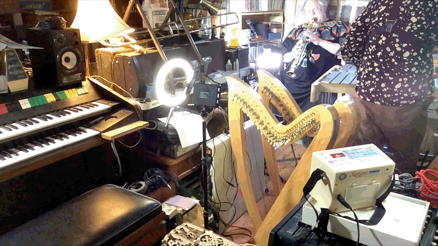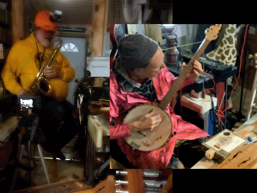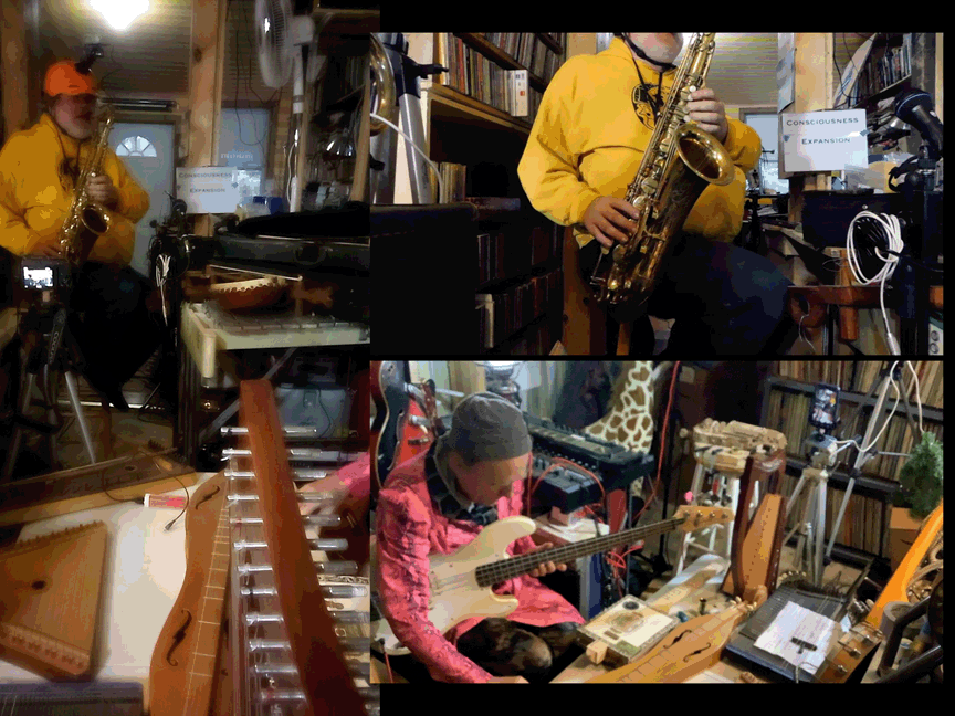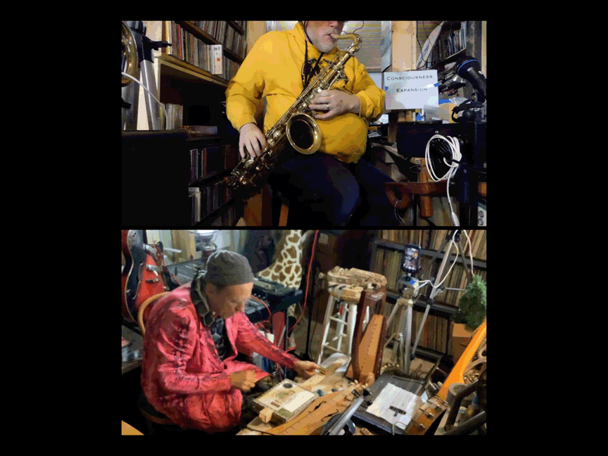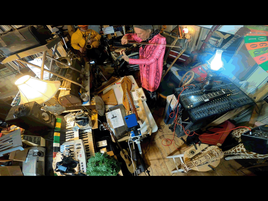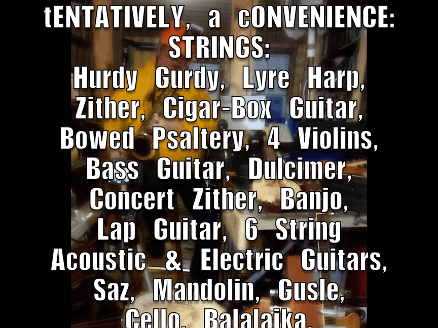 w/ Ben Opie: temor sax; tENTATIVELY, a cONVENIENCE: decorative hurdy gurdy, Celtic Lyre, Zither 19th century German Concert Zither, cigar-box guitar, lap guitar, dulcimer, 1/2 size violin, 3/4 size violin, full size violin, electric violin, gusle, 6 string acoustic guitar, 12 string acoustic guitar, 6 string electric guitar, cello, electric bass guitar, saz, mandolin, decorative balalaika, mini-guitar, bowed psaltery, 5 string banjo.