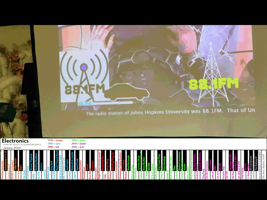 "ELECTRONICS", a movie of mine giving 88 examples of my ELECTRONICS work from 1976-2024 with its doundtrack turned off & a live soundtracked provided solo