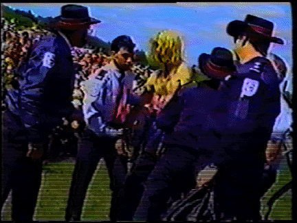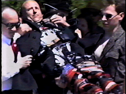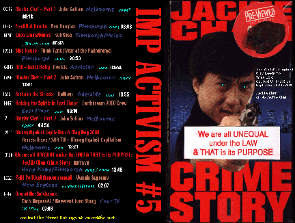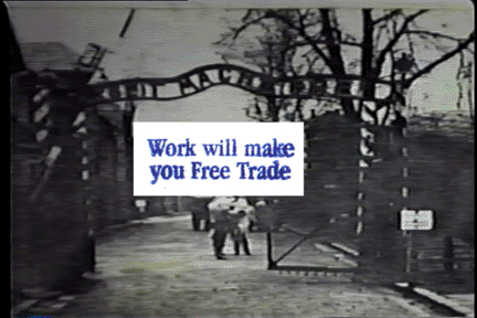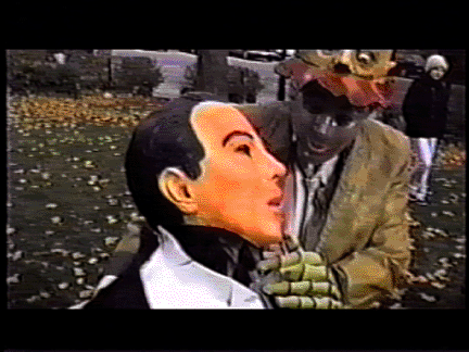There're 95 movies of mine listed below that I think of primarily as political movies. Some of them are 'propaganda' (or anti-propaganda), some are quasi-documentaries of protest actions, some are quasi-documentaries of political history, some are things connected to or made for alternative media such as pirate tv & a phone station, etc, etc.. "Cosmic Grunt/Betsy DeVos" is included just because it's a reading that I gave that parodied DeVos. Perhaps it doesn't belong here. "Limpolysemia" is another dubious inclusion because it was a televideoconference between impish activists rather than an act of impish acitivism itself. A similar critique might be made of the inclusion of "Old Folks at Home: Doug Retzler" but I include that because it's a pretty good overview of Doug's ecological & community works.